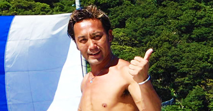 齋藤 好伸(さいとうよしのぶ) 屋久島出身のプロダイバー腰の低い姿勢と言葉遣いながらの動物系の風貌から、